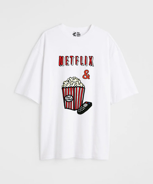 Netflix & Popcorn 240 GSM Unisex Oversized T-shirt