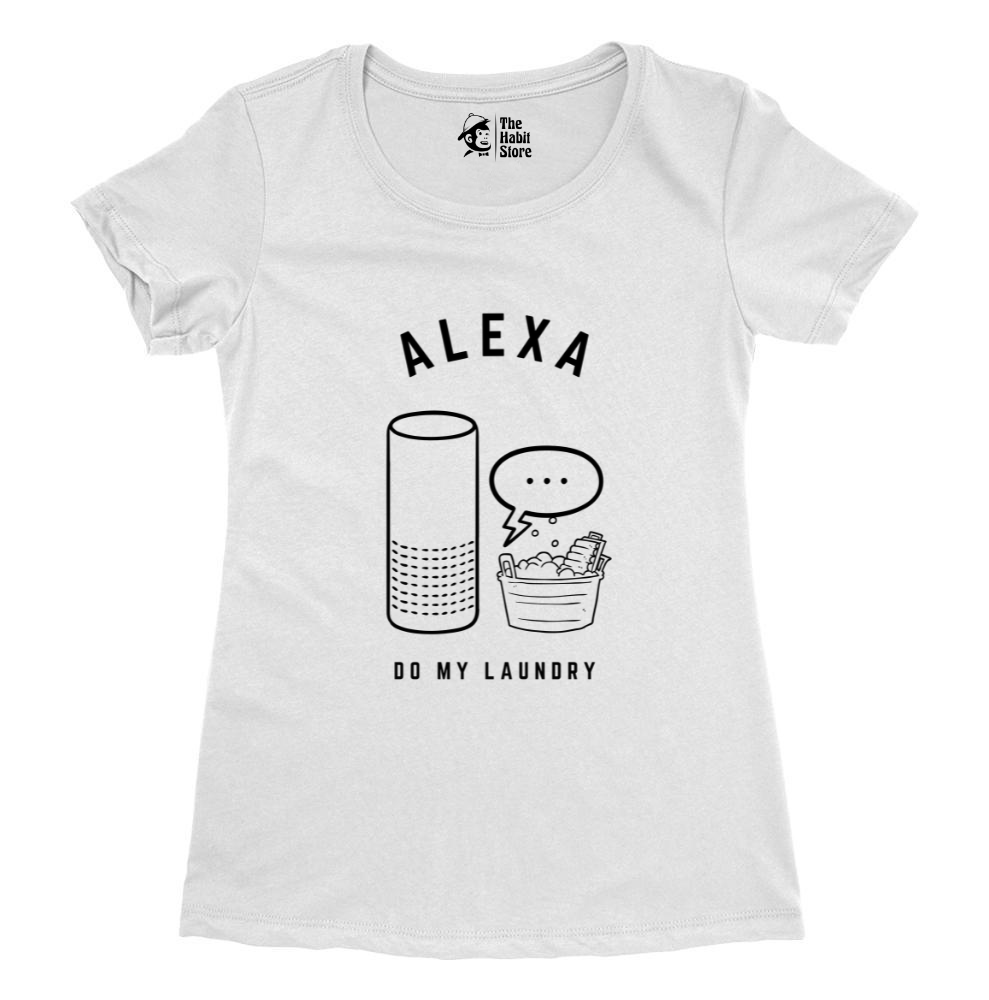 Alexa, Do My Laundry Women's White Round Neck Half Sleeve